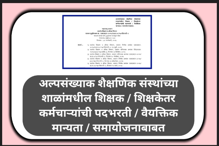 अल्पसंख्याक शैक्षणिक संस्थांच्या शाळांमधील शिक्षक / शिक्षकेतर कर्मचाऱ्यांची पदभरती / वैयक्तिक मान्यता / समायोजनाबाबत padbharti samayojan paripatrak