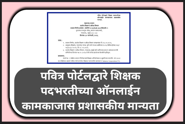 पवित्र पोर्टलद्वारे शिक्षक पदभरतीच्या ऑनलाईन कामकाजास प्रशासकीय मान्यता pavitra portal shikshak bharti