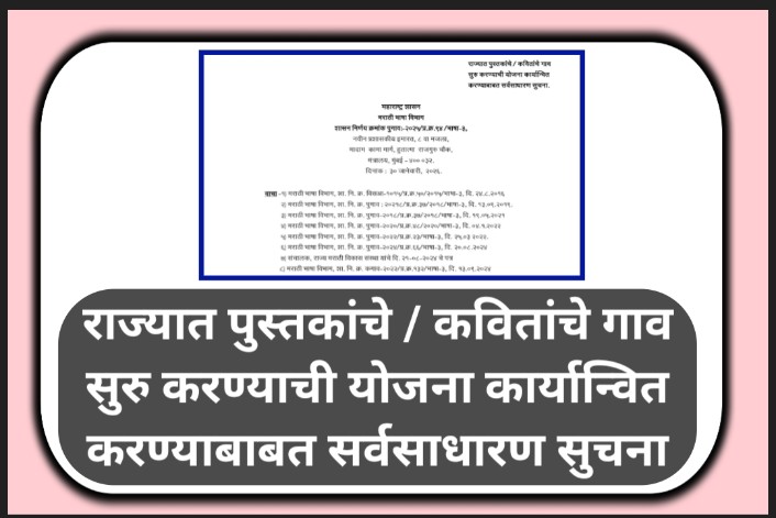 राज्यात पुस्तकांचे / कवितांचे गाव सुरु करण्याची योजना कार्यान्वित करण्याबाबत सर्वसाधारण सुचना village of poem