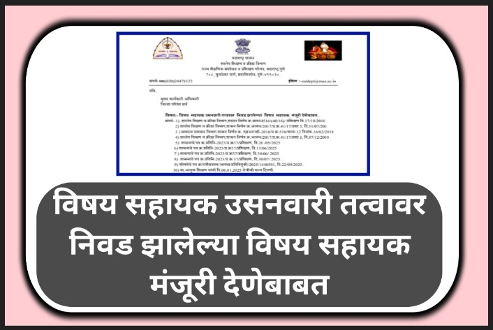 विषय सहायक उसनवारी तत्वावर निवड झालेल्या विषय सहायक मंजूरी देणेबाबत vishay sahayak paripatrak