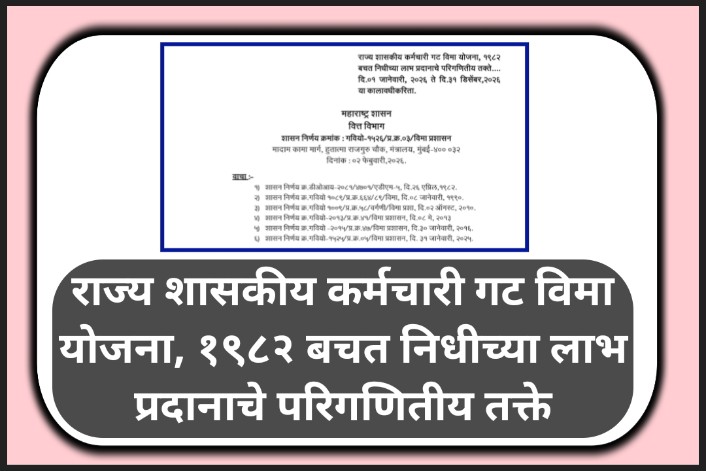 राज्य शासकीय कर्मचारी गट विमा योजना, १९८२ बचत निधीच्या लाभ प्रदानाचे परिगणितीय तक्ते gat vima yojana राज्य शासकीय कर्मचारी गट विमा योजना, १९८२ बचत निधीच्या लाभ प्रदानाचे परिगणितीय तक्ते…. दि.०१ जानेवारी, २०२६ ते दि.३१ डिसेंबर, २०२६ या कालावधीकरिता. प्रस्तावना :- राज्य शासकीय कर्मचारी गट विमा योजना, १९८२ अंतर्गत दिनांक १ जानेवारी, २०२५ ते दिनांक ३१ … Read more
