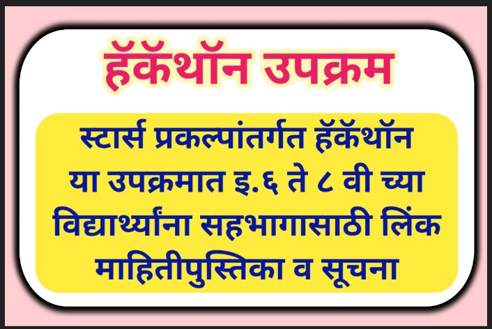 स्टार्स प्रकल्पांतर्गत हॅकॅथॉन या उपक्रमात इ.६ ते ८ वी च्या विद्यार्थ्यांना सहभागासाठी लिंक माहितीपुस्तिका व सूचना hackathon registration link instructions