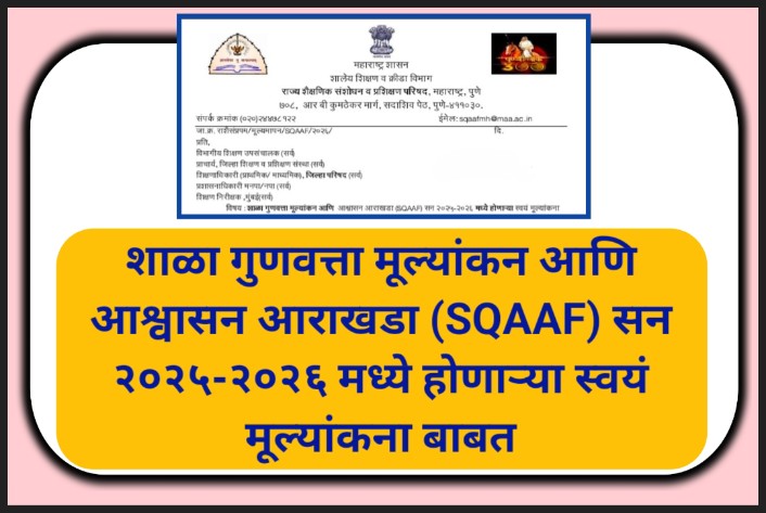 शाळा गुणवत्ता मूल्यांकन आणि आश्वासन आराखडा (SQAAF) सन २०२५-२०२६ मध्ये होणाऱ्या स्वयं मूल्यांकना बाबत sqaaf mulyankan paripatrak