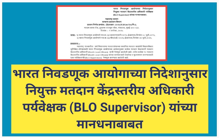भारत निवडणूक आयोगाच्या निदेशानुसार नियुक्त मतदान केंद्रस्तरीय अधिकारी पर्यवेक्षक (BLO Supervisor) यांच्या मानधनाबाबत