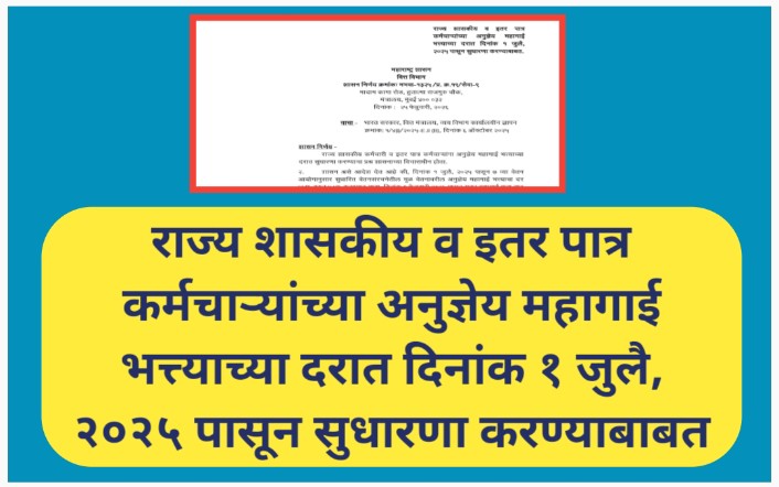 राज्य शासकीय व इतर पात्र कर्मचाऱ्यांच्या अनुज्ञेय महागाई भत्त्याच्या दरात दिनांक १ जुलै, २०२५ पासून सुधारणा करण्याबाबत dearness allowance