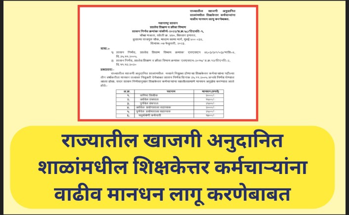 राज्यातील खाजगी अनुदानित शाळांमधील शिक्षकेत्तर कर्मचाऱ्यांना वाढीव मानधन लागू करणेबाबत vadhiv mandhan paripatrak