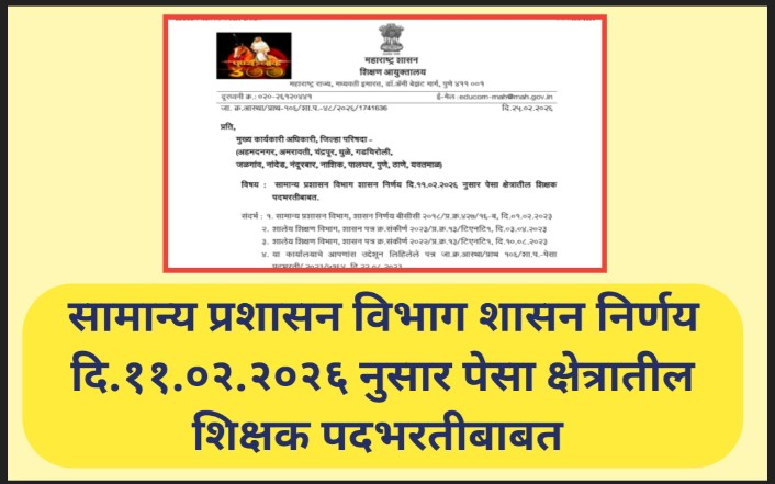 सामान्य प्रशासन विभाग शासन निर्णय दि.११.०२.२०२६ नुसार पेसा क्षेत्रातील शिक्षक पदभरतीबाबत pesa shikshak padbharti