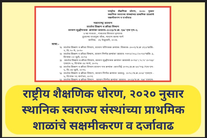 राष्ट्रीय शैक्षणिक धोरण, २०२० नुसार स्थानिक स्वराज्य संस्थांच्या प्राथमिक शाळांचे सक्षमीकरण व दर्जावाढ shala sakshamikaran