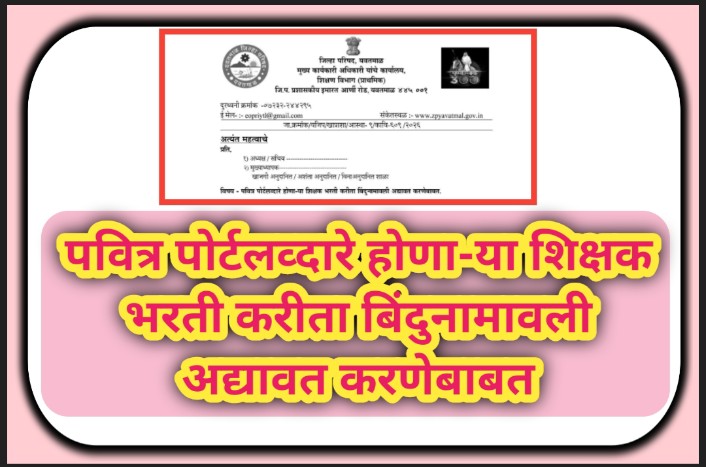 पवित्र पोर्टलव्दारे होणा-या शिक्षक भरती करीता बिंदुनामावली अद्यावत करणेबाबत pavitra portal shikshak bharti