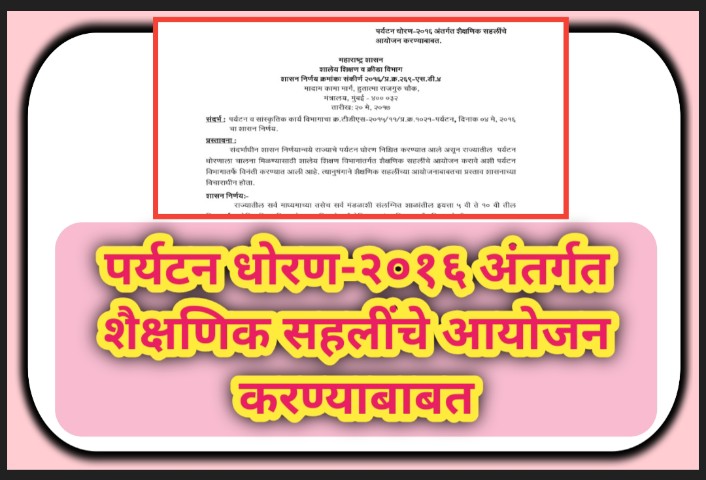 पर्यटन धोरण-२०१६ अंतर्गत शैक्षणिक सहलींचे आयोजन करण्याबाबत educational trip shasan paripatrak