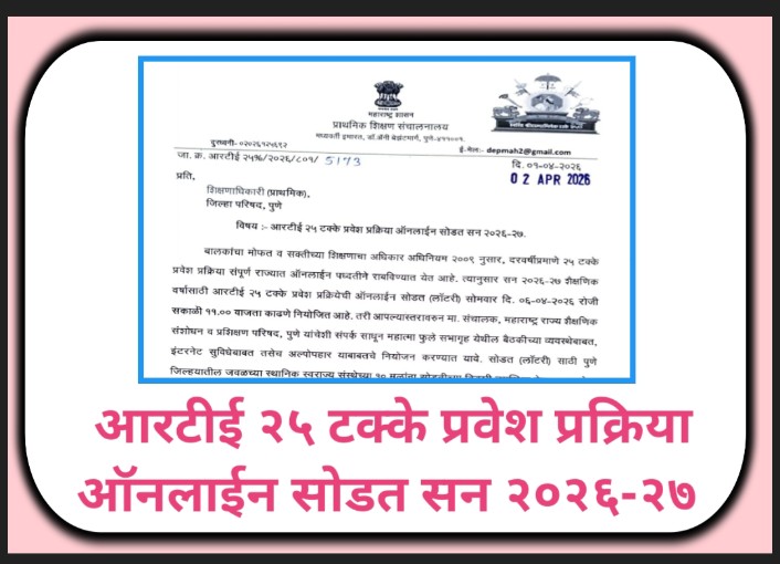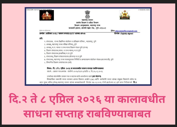 दि.२ ते ८ एप्रिल २०२६ या कालावधीत साधना सप्ताह राबविण्याबाबत sadhna saptah paripatrak विषय:- दि. २ ते ८ एप्रिल २०२६ या कालावधीत साधना सप्ताह राबविण्याबाबत संदर्भ :- शासन पत्र क्रमांक संकीर्ण-२०२५/प्र.क्र.५/प्राशि-५ दि.२५.०३.२०२६ उपरोक्त संदर्भाधीन शासन पत्र व सहपत्र यांचे अवलोकन व्हावे (प्रत संलग्न) विषयांकित प्रकरणी भारत सरकार, क्षमता विकास आयोग (CBC) आणि कर्मयोगी भारत’ यांच्या … Read more