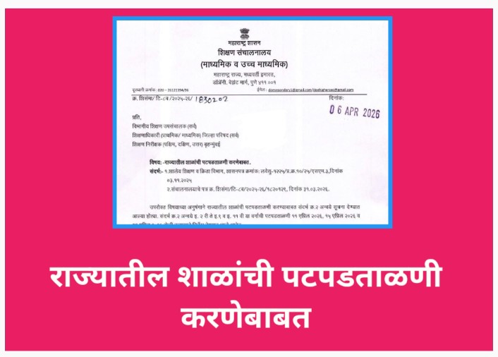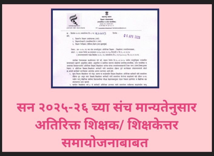 निवडणुकीच्या कामांकरीता प्रतिनियुक्तीने नियुक्त शिक्षकांची माहिती सादर करणेबाबत nivdnuk pratiniyukti संदर्भ : अवरसचिव, शालेय शिक्षण व क्रिडा विभाग, महाराष्ट्र शासन, मंत्रालय, मुंबई यांचे पत्र क्र. संकीर्ण २०२६/प्र.क्र.१७६/टीएनटी-१, दि.३० मार्च, २०२६ उपरोक्त विषयाचे अनुषंगाने संदर्भिय पत्रानुसार शासनाने, निवडणुकीच्या कामांकरीता प्रतिनियुक्तीने नियुक्त शिक्षकांची माहिती तात्काळ सादर करणेबाबतचे निर्देश दिले आहेत. संदर्भिय पत्रानुसार, स्थानिक स्वराज्य संस्था व खाजगी … Read more