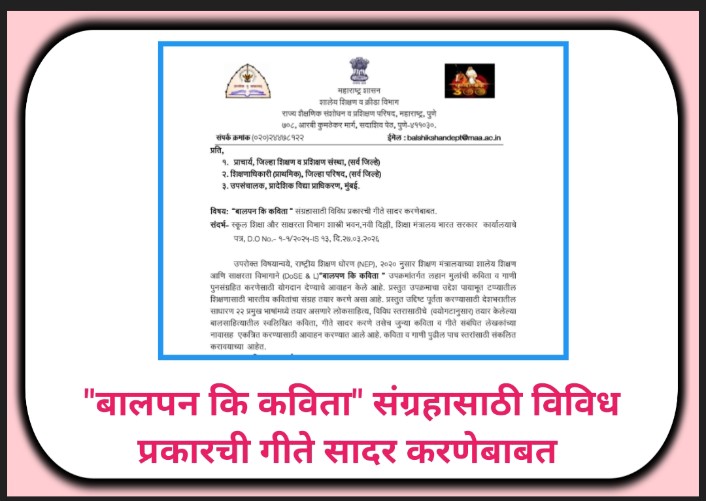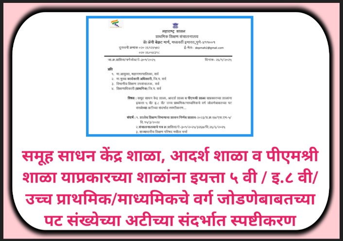 इयत्ता १ ली ते १० वी सर्व विषय प्रश्नपेढी उपलब्ध prashnapedhi available राज्य शैक्षणिक संशोधन व प्रशिक्षण परिषद, महाराष्ट्र, पुणे यांच्या मूल्यमापन विभागामार्फत इयत्ता १ ली ते १० वी साठी मराठी, इंग्रजी, गणित, विज्ञान, परिसर अभ्यास, हिंदी व सामाजिक शास्त्र या विषयांच्या इयत्तानिहाय व विषयनिहाय क्षमता आधारित प्रश्नपेढी http://www.maa.ac.in या संकेतस्थळावर उपलब्ध करून देण्यात आल्या … Read more