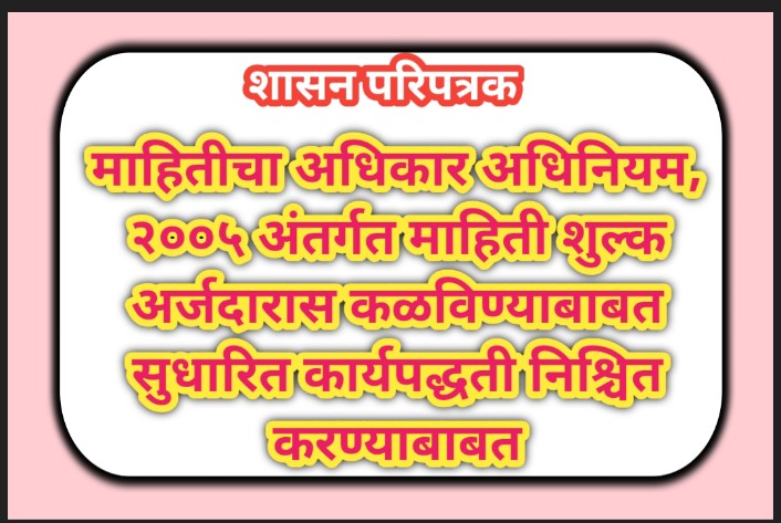 माहितीचा अधिकार अधिनियम, २००५ अंतर्गत माहिती शुल्क अर्जदारास कळविण्याबाबत सुधारित कार्यपद्धती निश्चित करण्याबाबत right to information