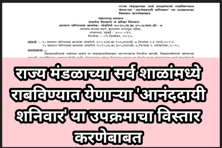 राज्य मंडळाच्या सर्व शाळांमध्ये राबविण्यात येणाऱ्या ‘आनंददायी शनिवार’ या उपक्रमाचा विस्तार करणेबाबत anandadayi shanivar paripatrak