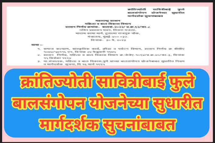 क्रांतिज्योती सावित्रीबाई फुले बालसंगोपन योजनेच्या सुधारीत मार्गदर्शक सुचनांबाबत दि.30 मे 2023 चा शासन निर्णय balsangopan yojana paripatrak