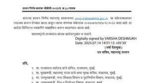 सदरचा शासन निर्णय महाराष्ट्र शासनाच्या www.maharashtra.gov.in या संकेतस्थळावर उपलब्ध करून देण्यात आला असून त्याचा संगणक संकेतांक २०२५०७१४१४५०१८१०२२ असा आहे. हा आदेश डिजिटल स्वाक्षरीने साक्षांकित करुन काढण्यात आला आहे.