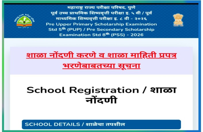 शिष्यवृत्ती परीक्षा (इ.5 वी / इ.8 वी) – 2026 शाळा नोंदणी व शाळा माहिती प्रपत्र भरण्याबाबत मुद्देनिहाय सूचना School Registration School Profile