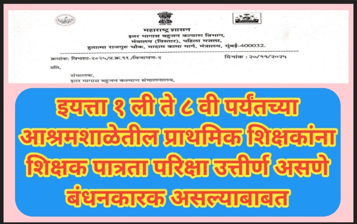 सन २०२४-२५ संचमान्यतेनुसार शिक्षकेत्तर कर्मचा-यांचे समायोजन करणेबाबत sanchmanyata shasan paripatrak संदर्भः १. शासन निर्णय क्रमांक. संकीर्ण-२००/प्र.क्र.६७/टिएनटी-१ दि.०४.०४.२०२५. २. मा. आयुक्त (शिक्षण) यांचेकडील दि.२७.०५.२०२५ रोजीची बैठकीतील निर्देश. ३. संचालनालयाचे पत्रक्र. शिसंमा/शिक्षकेत्तर पदभरती/कार्यासन – टि-४/२५९२ दि.२८.०५.२०२५. ४. संचालनालयाचे पत्रक्र. शिसंमा/शिक्षकेत्तर समायोजन/कार्यासन टि-४/१४८१६१६ दि.०९.१०.२०२५ उपरोक्त संदर्भिय संचालनालयाचे संदर्भ क्र.४ च्या पत्रान्वये सन २०२४-२५ च्या संचमान्यतेनुसार मंजूर व रिक्त, … Read more