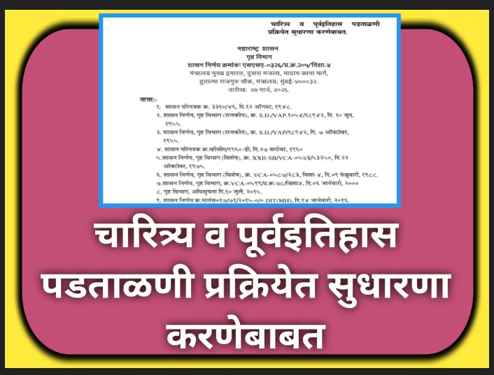 चारित्र्य व पूर्वइतिहास पडताळणी प्रक्रियेत सुधारणा करणेबाबत character validation improvement
