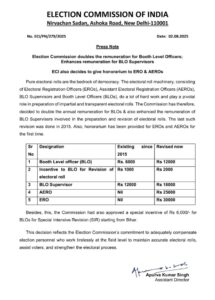 This decision reflects the Election Commission’s commitment to adequately compensate election personnel who work tirelessly at the field level to maintain accurate electoral rolls, assist voters, and strengthen the electoral process.