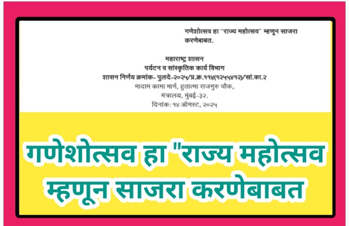 गणेशोत्सव हा “राज्य महोत्सव म्हणून साजरा करणेबाबत ganveshotsav rajya mahotsav celebration