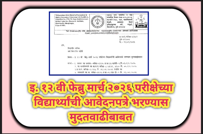 इ. १२ वी फेब्रु मार्च २०२६ परीक्षेच्या विद्यार्थ्यांची आवेदनपत्रे भरण्यास मुदतवाढीबाबत hsc exam avedanpatra