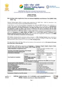 National Testing Agency (NTA) is inviting online Applications for NEET (UG) 2026 for admission to the undergraduate medical courses in all medical institutions in India.