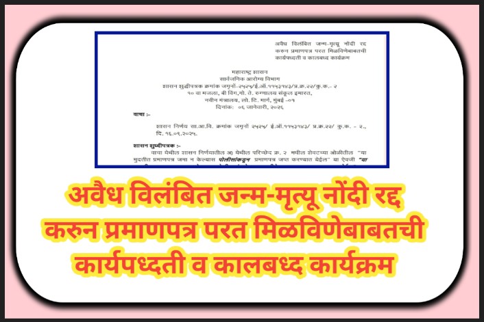 अवैध विलंबित जन्म-मृत्यू नोंदी रद्द करुन प्रमाणपत्र परत मिळविणेबाबतची कार्यपध्दती व कालबध्द कार्यक्रम janma mrutyu nond paripatrak