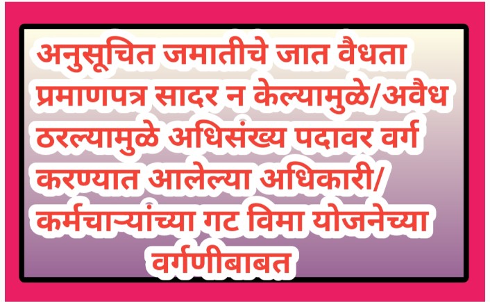 अनुसूचित जमातीचे जात वैधता प्रमाणपत्र सादर न केल्यामुळे / अवैध ठरल्यामुळे अधिसंख्य पदावर वर्ग करण्यात आलेल्या अधिकारी/कर्मचाऱ्यांच्या गट विमा योजनेच्या वर्गणीबाबत karmachari gatvima vargani