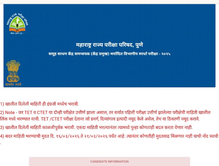 4) सदर माहिती भरण्याची मुदत दि. १६/०३/२०२६ ते २१/०३/२०२६ पर्यंत आहे. त्यानंतर कोणतीही मुदतवाढ मिळणार नाही याची नोंद घ्यावी.