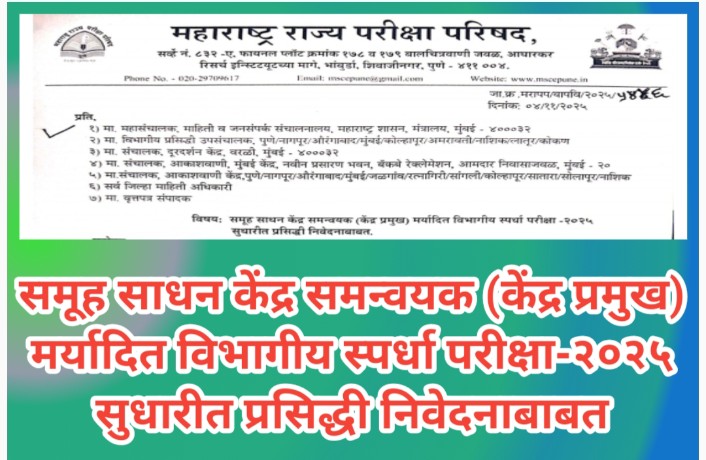 समूह साधन केंद्र समन्वयक (केंद्र प्रमुख) मर्यादित विभागीय स्पर्धा परीक्षा-२०२५ सुधारीत प्रसिद्धी निवेदनाबाबत kendrapramukh exam