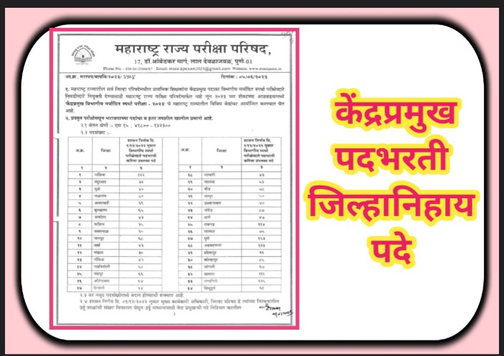 विभागीय स्पर्धा परीक्षेव्दारे केंद्रप्रमुख पदभरती करिता उपलब्ध जिल्हानिहाय पदे kendrapramukh post vaccancy