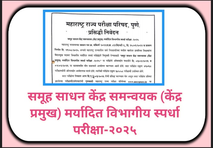 समूह साधन केंद्र समन्वयक (केंद्र प्रमुख) मर्यादित विभागीय स्पर्धा परीक्षा-२०२५