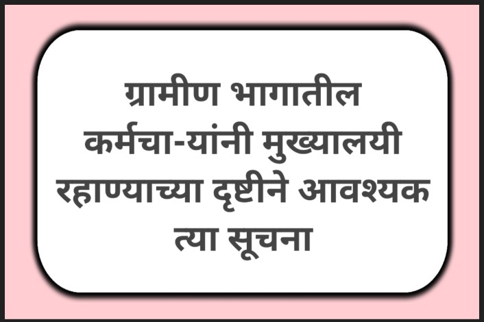 ग्रामीण भागातील कर्मचा-यांनी मुख्यालयी रहाण्याच्या दृष्टीने आवश्यक त्या सूचना mukhyalayi rahane