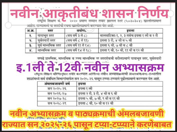 राष्ट्रीय शिक्षण धोरण २०२० च्या अनुषंगाने नवीन अभ्यासक्रम व पाठ्यक्रमाची अंमलबजावणी राज्यात सन २०२५-२६ पासून टप्या-टप्प्याने करणेबाबत navin abhyaskram pathyakram