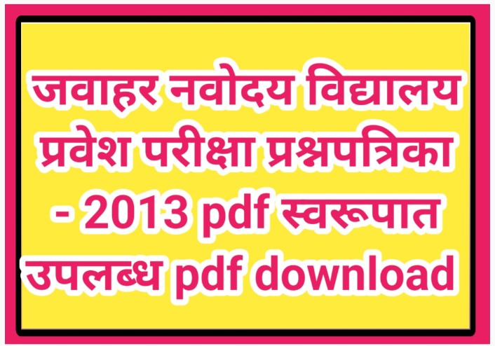 जवाहर नवोदय विद्यालय प्रवेश परीक्षा प्रश्नपत्रिका – 2013 pdf स्वरूपात उपलब्ध pdf download