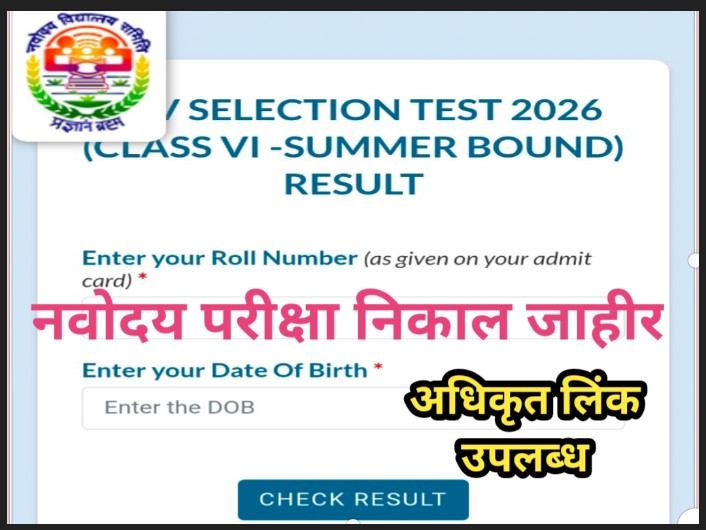 नवोदय परीक्षा निकाल लिंक https://cbseit.in/cbse/2026/nvsrst/NVS_Cls6.aspx