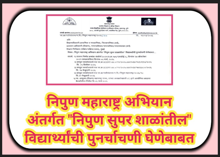 निपुण महाराष्ट्र अभियान अंतर्गत “निपुण सुपर शाळांतील” विद्यार्थ्यांची पुनर्चाचणी घेणेबाबत nipun maharashtra abhiyan