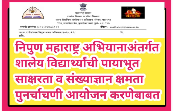 निपुण महाराष्ट्र अभियानाअंतर्गत शालेय विद्यार्थ्यांची पायाभूत साक्षरता व संख्याज्ञान क्षमता पुनर्चाचणी आयोजन करणेबाबत nipun maharashtra abhiyan ayojan