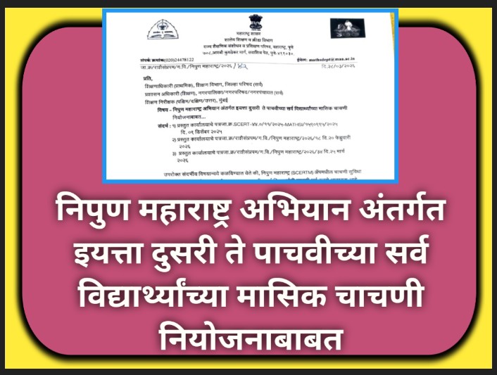 निपुण महाराष्ट्र अभियान अंतर्गत इयत्ता दुसरी ते पाचवीच्या सर्व विद्यार्थ्यांच्या मासिक चाचणी नियोजनाबाबत nipun maharashtra chachni