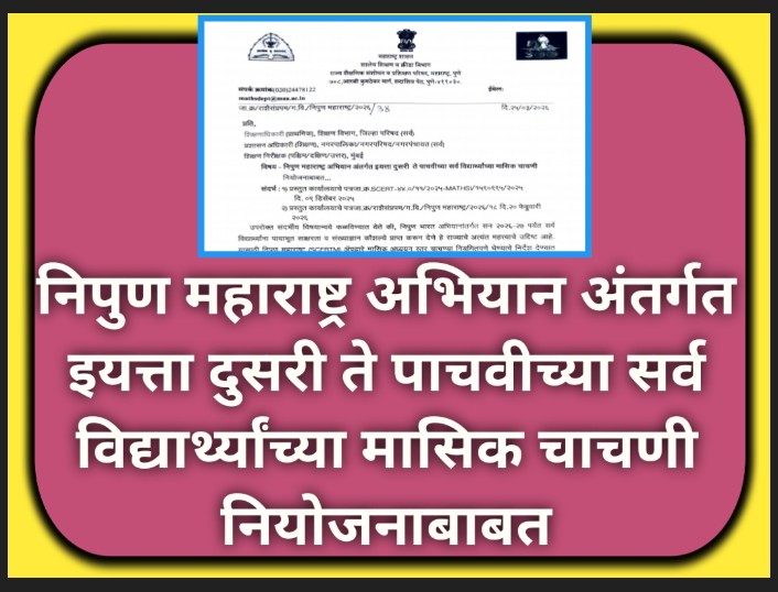 निपुण महाराष्ट्र अभियान अंतर्गत इयत्ता दुसरी ते पाचवीच्या सर्व विद्यार्थ्यांच्या मासिक चाचणी नियोजनाबाबत nipun maharashtra chachni