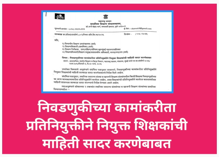 निवडणुकीच्या कामांकरीता प्रतिनियुक्तीने नियुक्त शिक्षकांची माहिती सादर करणेबाबत nivdnuk pratiniyukti