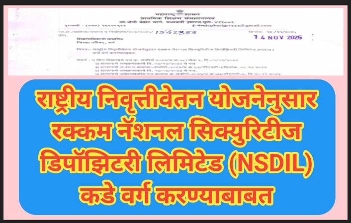 परिभाषित अंशदान निवृत्तीवेतन योजनेमध्ये जमा असलेल्या रकमा राष्ट्रीय निवृत्तीचेतन योजनेतील खात्यावर बर्ग करणे आवश्यक आहे. संचालनालयाकडून जिल्हा परिषदासंदर्भात शालार्थ प्रणालीमधील प्राप्त माहितीनुसार दि. १७/१०/२०२५ रोजी सादर केलेल्या विवरणानुसार अद्यापही रु.१० कोटीपेक्षा जास्त रकमा राष्ट्रीय निवृत्तीवेतन योजना (NPS) मध्ये वर्ग करण्याचे बाकी आहे. सदर बाम वित्तीय औचित्यानुसार निश्चितब चिंताजनक आहे. याबाबत शासनाकडून अर्थशासकीय पत्र प्राप्त झालेले असून तात्काळ विशेष नोहिम राबवून १५ दिवसात सदर रकमा राष्ट्रीय निवृत्तीवेतन योजना (NPS) मध्ये वर्ग करण्याची कार्यवाही करून सोबत जोडलेल्या विहीत नमुन्यात त्याची माहिती तात्काळ सादर करावी. तसेच ज्यांचे एनपीएस चे खाते उघडण्यात आलेली नाहीत अशा कर्मचायांचे एनपीएस खाते उघडून त्यांच्याही रकमा एनएसडीएल कडे वर्ग करण्याची कार्यवाही करून याबाबतचा अनुपालन अहवाल सादर करणेबाबत निर्देश दिलेले आहेत.
