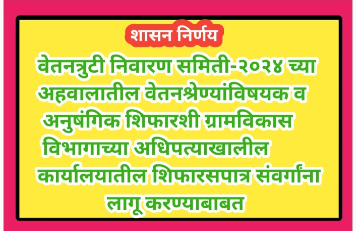 वेतनत्रुटी निवारण समिती-२०२४ च्या अहवालातील वेतनश्रेण्यांविषयक व अनुषंगिक शिफारशी ग्रामविकास विभागाच्या अधिपत्याखालील कार्यालयातील शिफारसपात्र संवर्गांना लागू करण्याबाबत vetantruti nivaran samiti