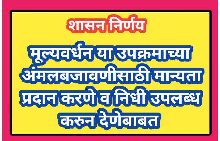 मूल्यवर्धन या उपक्रमाच्या अंमलबजावणीसाठी मान्यता प्रदान करणे व निधी उपलब्ध करुन देणेबाबत mulyavardhan upkram anmalbajavani