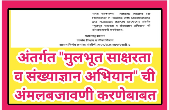 भारत सरकारच्या National Initiative For Proficiency In Reading With Understanding and Numeracy (NIPUN BHARAT) अंतर्गत “मुलभूत साक्षरता व संख्याज्ञान अभियान” ची अंमलबजावणी करणेबाबत.