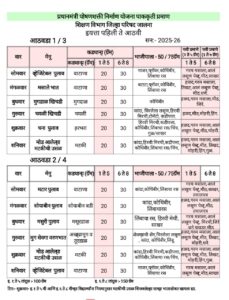 प्रधानमंत्री पोषणशक्ती निर्माण योजना पाककृती प्रमाण इयत्ता पहिली ते आठवी प्रमाण खालील प्रमाणे