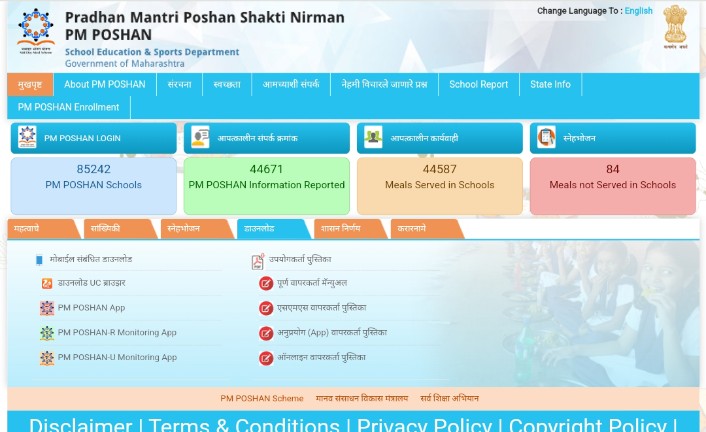 प्रधानमंत्री पोषणशक्ती निर्माण योजनेअंतर्गत लाभ दिलेल्या विद्यार्थीची दैनंदिन माहिती भरणे करिता वेबसाइट लिंक pm poshan mid day meal website link