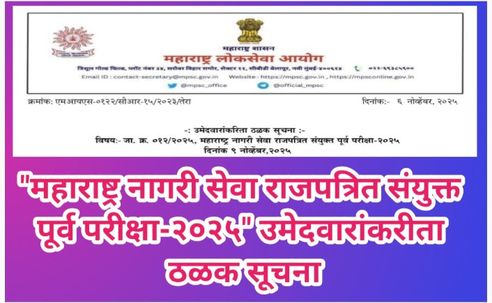 “महाराष्ट्र नागरी सेवा राजपत्रित संयुक्त पूर्व परीक्षा-२०२५” उमेदवारांकरीता ठळक सूचना rajpatrit sanyukta purva pariksha